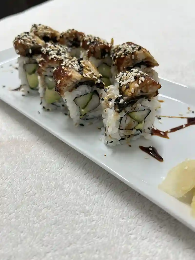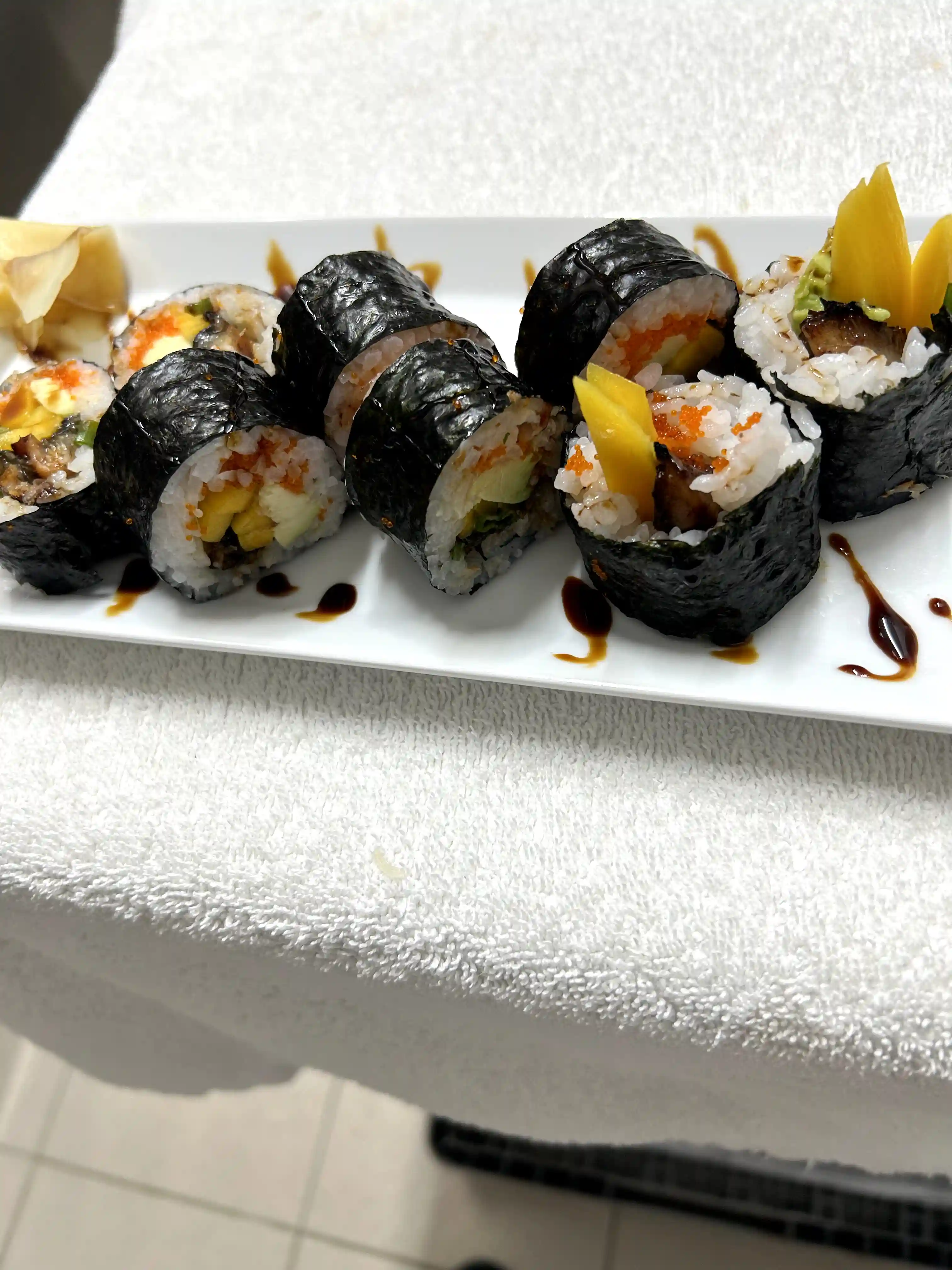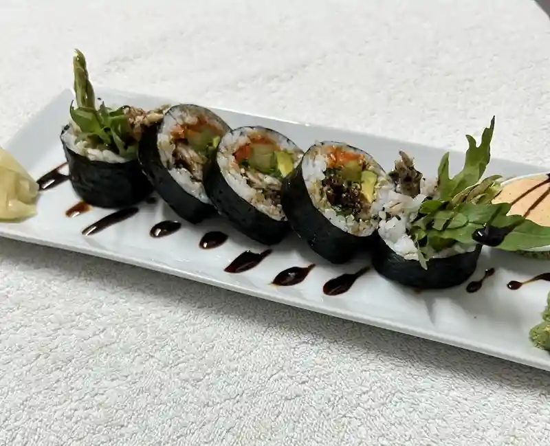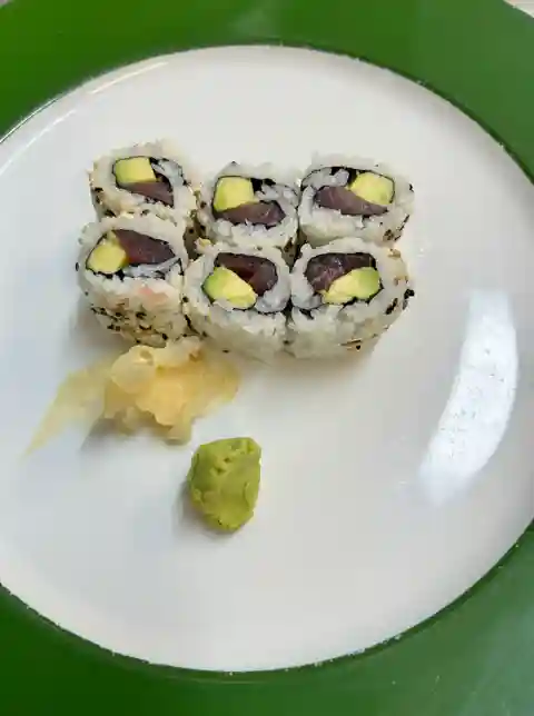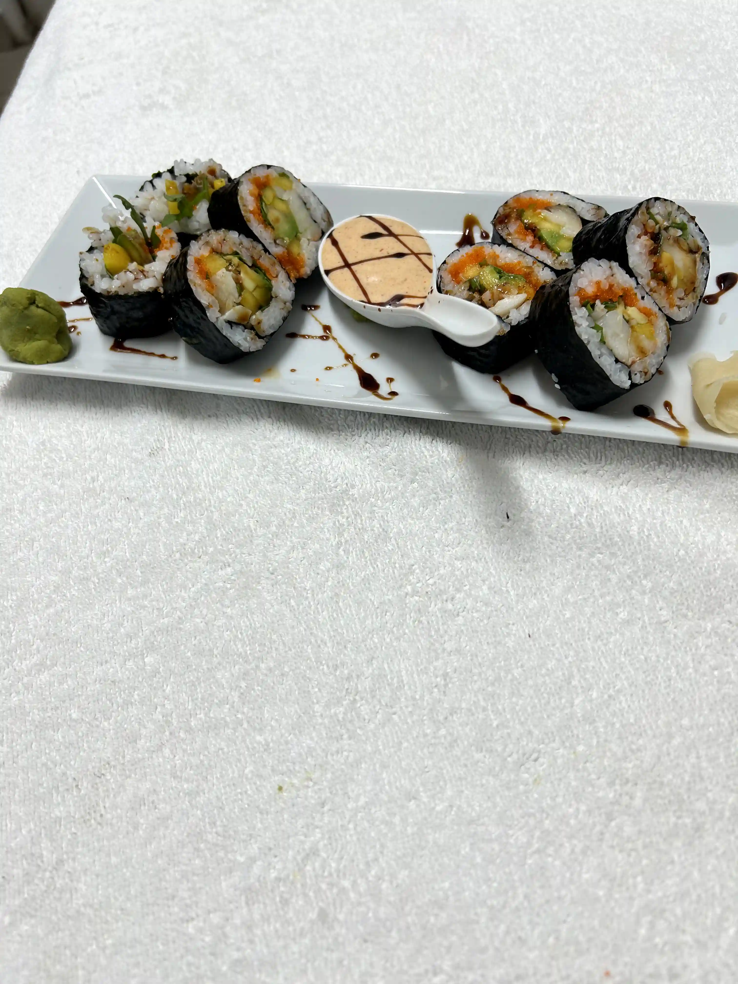 Riz, concombre, avocat, edamame, carotte, wakame, alfalfa
