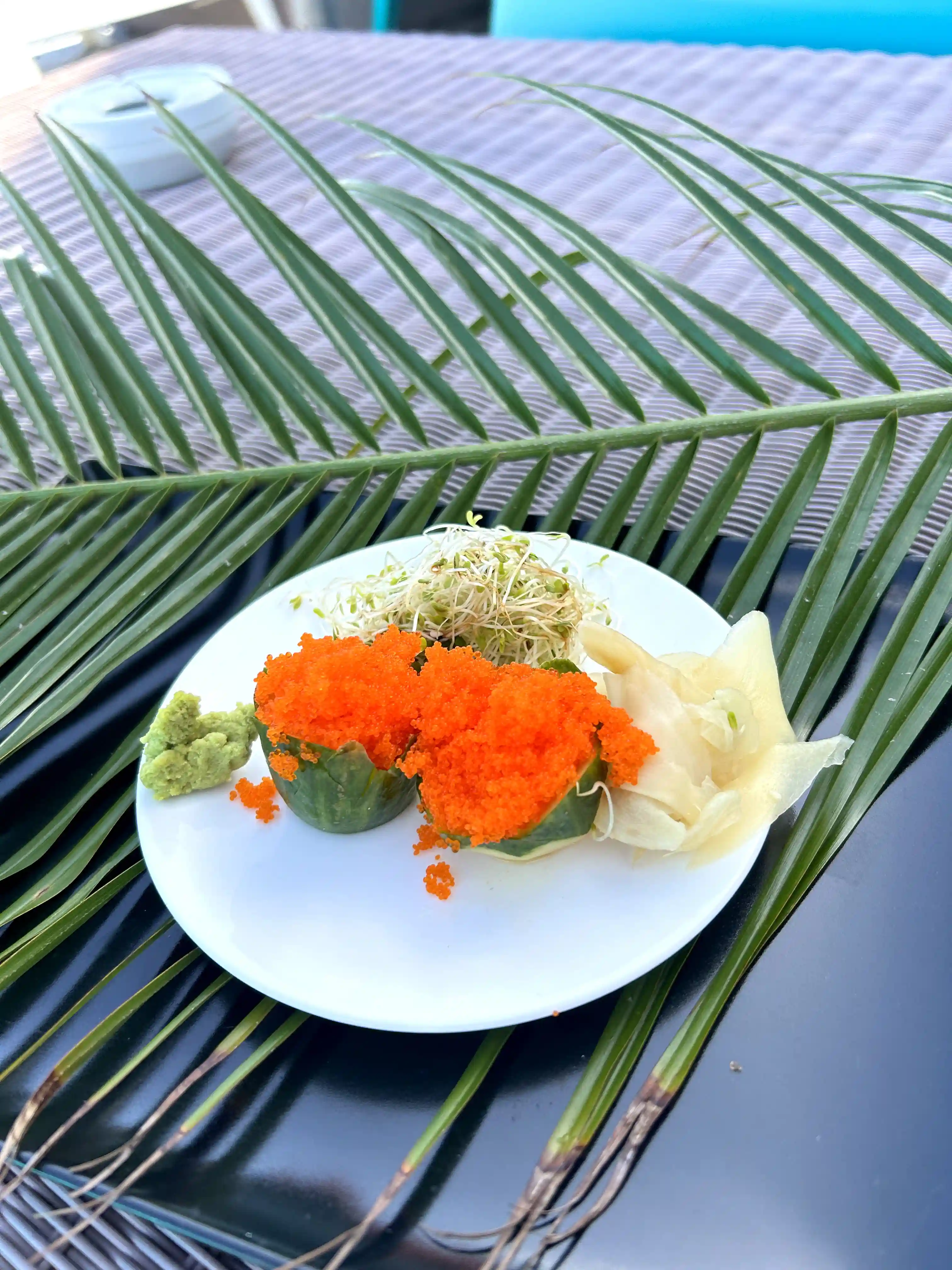 Langouste, avocat, roquette, mangue, masago, spicy mayo